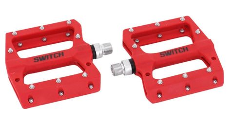Pedale vtt descente bmx switch jump rouge resine filetage 9 16 avec picots argent paire