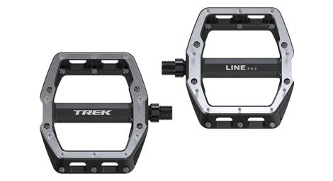 La pedale trek line pro est la pedale plate la plus performante qui comporte des picots de traction remplacables et des composants internes totalement reparables pour une performance durable details corps en aluminium t 6 pedale plate au design concave grace aux picots judicieusement places pour maintenir la chaussure en place en montee comme en descente la rotation de l axe est garantie par des roulements a cartouche etanches 10 picots par face picots d adherence en acier remplacables s installe a l aide d une cle hexagonale de 8 mm poids 342 g