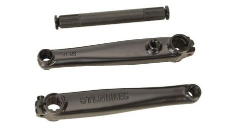 Pedalier stolen mob v4 en version noir cette nouvelle version est maintenant compatible avec la couronne a droite rhd ou a gauche lhd longueur des manivelles au choix dans les options details axe creux de 19 mm 48 cannelures matiere chromoly avec traitement thermique apres soudure forme rectangulaire pour la rigidite traitement electro deposit contre la corrosion axe chromoly usine et traite thermiquement 8 cannelures 19 mm de diametre longueur 150 mm visserie axe acier forge filetages 8x1mm visserie couronne acier forge classique 10x1 5mm cote droit rhd ou gauche lhd design 3 pieces poids 989 g en 165 mm