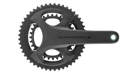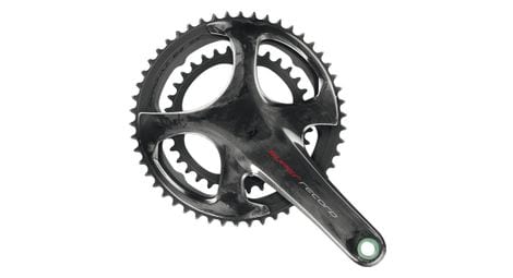 Nouveau pedalier campagnolo super record wireless 12 x 2 vitesses le design iconique de campagnolo avec la fibre de carbone apparente applique a un pedalier concu pour des performances maximales le pedalier super record wireless a une structure creuse et allegee et utilise le systeme de fermeture ultra torque avec axe en titane pour transferer a la transmission toute la puissance imprimee sur les pedales par l athlete l utilisation de roulements ceramiques usb permet d obtenir la fameuse efficacite de roulement qui est devenue la marque de fabrique de campagnolo le pedalier super record wireless fait partie de la nouvelle transmission concue pour offrir un schema de rapports innovant 34 50 32 48 29 45 qui en synergie avec les nouvelles cassettes de pignons offre la plus large plage de developpement metrique possible le systeme ultra torque complete la specification en vous assurant que toute votre puissance se transformera en performance extraordinaire une reactivite immediate et fulgurante dirigee le long d un axe en titane et des manivelles legeres en fibre de carbone le plateau a ete repense pour une efficacite optimale chaque watt de votre puissance est transfere au sol projetez vos performances dans une nouvelle dimension details q factor 148 ligne de chaine 45 8 mm manivelles en fibre de carbone unidirectionnelle axe en titane et plateaux en aluminium axe ultra torque dents symetriques pour le plateau interieur 12 vitesses dents 34 50 poids 585 g en 172 5mm et 29 45