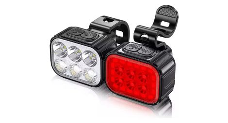 Vous recherchez un kit d eacute clairage fiable pour votre v eacute lo pour les jours sombres et les trajets nocturnes ce kit complet avec feu avant et arri egrave re vous garantit une s eacute curit eacute et une visibilit eacute optimales sur la route avec un feu avant de 350 lumens et un feu arri egrave re de 50 lumens ce kit offre une luminosit eacute impressionnante et un eacute quilibre parfait entre voir et ecirc tre vu gr acirc ce agrave la puissante batterie au lithium de 1100 mah et agrave un temps de charge rapide de seulement 2 heures vous n aurez plus jamais agrave vous soucier des lampes d eacute charg eacute es les lampes sont eacute tanches ipx4 et r eacute sistantes aux intemp eacute ries parfait pour les trajets domicile travail et les randonn eacute es agrave v eacute lo aventureuses nbsp sp eacute cifications et caract eacute ristiques feu avant 6 led ndash 350 lumens feu arri egrave re 6 led ndash 50 lumens batterie lithium 1100 mah puissance 3 w courant de charge 1 a temps de charge 2 heures eacute tanch eacute it eacute ipx4 dimensions 43 5 times 30 times 27 mm poids 86 g nbsp modes d eacute clairage feu avant feu de route 3 heures moyen 5 heures faible 10 heures clignotement rapide 8 heures feu arri egrave re feu de route 3 heures moyen 6 heures faible 12 heures clignotement lent 10 heures pulsation 12 heures clignotement rapide 10 heures nbsp nbsp commandez d egrave s maintenant et vous roulerez bient ocirc t en toute s eacute curit eacute et de mani egrave re visible sur la route