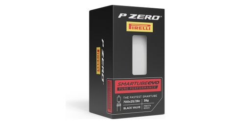 Le p zero smartube evo est la derniere innovation de pirelli dans le monde des chambres a air visant a ameliorer les performances du cyclisme moderne c est le resultat de notre developpement des boyaux world tour desormais disponibles pour les sorties quotidiennes a velo fabrique en polyurethane thermoplastique tpu celui ci permet d economiser jusqu a 70 du poids des chambres a air ordinaires en butyle et d economiser pres de 50 d espace tout en constituant une matiere premiere plus resistante que le butyle le p zero smartube evo zero roule 5 plus vite qu un smartube standard ce qui vous permet d accelerer et de grimper plus rapidement a velo tout en ameliorant votre maniabilite le p zero smartube evo comporte une valve presta disponible dans une gamme complete de hauteurs de valve pour s adapter a toutes les jantes le poids du p zero smartube evo est jusqu a 70 inferieur a celui d une chambre a air en butyle standard et sa resistance est egalement augmentee grace a une amelioration de 5 du roulement le p zero smartube evo ameliore la rapidite et le maniement de votre velo tant en montagne qu en plaine le p zero smartube evo vous libere 50 d espace tout en constituant une matiere premiere plus resistante que le butyle details taille de roue 700c utilisation route 70 plus legere qu une chambre a air butyle materiau polyurethane thermoplastique valve presta 60 mm dimensions etrto reference ean 700 x 25 28 40 g 4361000 8019227436105