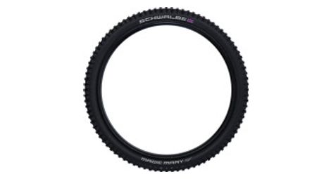 Magic mary la bande de gravite ultime le favori inconteste de tous les athletes schwalbe downhill et enduro proprietes polyvalentes parfaites pour presque toutes les surfaces et conditions le profil intermediaire raffine est combine avec les meilleurs composes et la meilleure construction et repousse ainsi les limites a des hauteurs sans precedent des crampons d epaulement solides et une conception de bande de roulement agressive et ouverte offrent une traction de freinage et une adherence dans les virages maximales meme sur des surfaces tres boueuses avec les v groves developpes pour magic mary chaque crampon a encore plus de dents avec la surface pour encore plus d adherence les crampons plats inclines au centre de la bande de roulement optimisent la maniabilite specifications du produit taille etrto 62 584 27 5 x 2 40 pouces type pneu souple compose de caoutchouc addix ultra soft version super downhill couleur noir joint tle tubeless easy poids 1345 grammes pression des pneus max 3 50 bar 50 psi maximum max 115 kg epi 2x67 e bike e 50 profil hs447 chambres a air 21 21a 21ap 21 ap 21f
