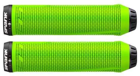Les grips spank spike sont concus pour une utilisation all mountain enduro trail freeride dh et e bike grace a un design anatomique et resistant aux chocs details gomme double densite systeme de serrage lock on human factor diametre 30mm longueur 145mm poids 100g la paire reference sp grp 0015 oran