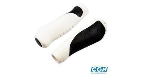 poignee velo ergonomique noir/blanc 130mm avec bouchon (pr)