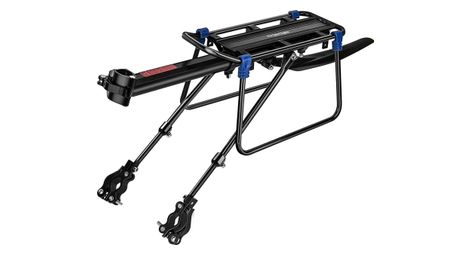 Ce porte bagages a montage rapide se fixe a une tige de selle standard max 33 mm et a une fourche arriere max 26 mm a l aide d une attache rapide et se retire facilement la charge maximale est de 50 kg avec ce porte bagages vous pouvez repartir les bagages de maniere egale sur trois endroits en attachant des sacoches des deux cotes et en stockant le reste sur le dessus vous pouvez securiser la charge avec le porte bagages inclus et le reflecteur offre une visibilite supplementaire la longueur est reglable et les barres laterales empechent les sacoches de toucher les roues ce porte bagage convient a de nombreux types de velos tels que les velos de route et les vtt dimensions du porte velos 35 x 14 5 cmgrace au manuel video le montage est un jeu d enfant commandez maintenant et transportez bientot jusqu a 50 kg de bagages supplementaires sur votre velo