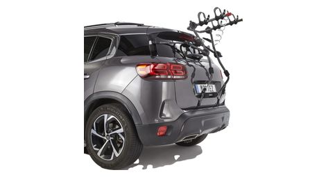 Voici le porte velo sur hayon mottez shiva 2 elec porte velo rehausse sur hayon pour 2 velos electriques 3 types de fixation 1 fixation haute sur hayon ou sur barres longitudinales type railing ou barres de toit en fixation positive 2 fixation centrale avec 1 sangle passant dans le coffre 3 fixation basse sur hayon ou chassis details crabots pour reglage du porte velo ultra rapide 5 sangles de fixation 2 hautes sur hayon ou barres 1 centrale passante coffre et 2 basses sur hayon ou chassis fixation des velos par 4 blocs cadres xxl special gros cadre o maxi 130 mm et ou 408 mm de circonference et 2 sangles de serrage total rouge pour plus de securite 4 patins haute densite pour proteger la carrosserie livre avec un cable antivol pour securiser les 2 velos electriques conforme a la norme francaise teste par le lne n rapport p199508 dec 2 du 16 06 2020 descriptif technique tube o 25 mm poudre noir sable dimension 580 x 210 x 940 mm charge max 2 velos de 20 kg soit 40 kg retirer la batterie pour plus de securite poids du porte velo 8 00 kg vitesse autorisee 110 km h
