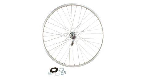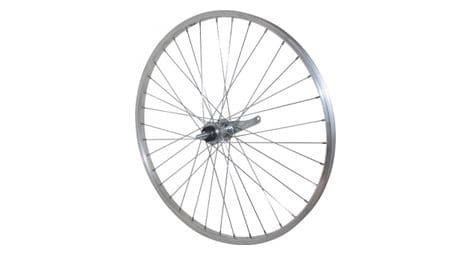 Roue velo urbain 650 x 35b ar ecrou axe plein jante alu argent retropedalage 36t