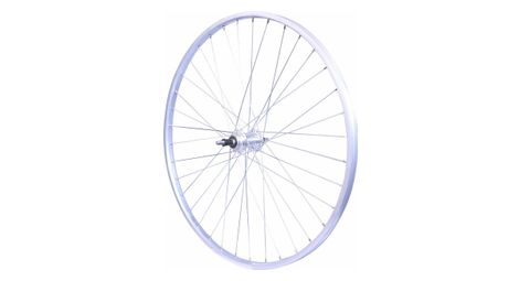 Roue velo urbain 650 x 35b ar ecrou axe plein jante alu argent retropedalage 36t