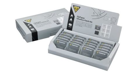 Boite de rustines autocollantes topeak flypaper avec 20 lots de 6 rustines comprend 20 lots de 6 rustines 1 papier de verre par lot reference tgp03