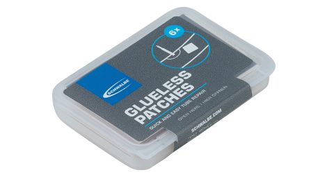 Les glueless patches de schwalbe sont autocollants et permettent de reparer rapidement et facilement tes chambres a air ils conviennent egalement pour les chambres a air aerothan de schwalbe lors de la reparation d une chambre a air aerothan il est contre indique de traiter la partie endommagee avec du papier emeri pour la rendre rugueuse avant d apposer la rustine details type butyl dimensions lxl 20x20mm 6 rustines et 1 papier emeri pour poncer