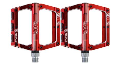 La paire de pedales sb3 flowy am 2 super light pour la pratique de la randonnee et du all mountain tres fine avec ses 18 mm elle offre un super grip et des sensations au plus proche du velo details materiaux plateforme aluminium axe crmo picots remplacables roulements bushings longueur plateforme 100 mm largeur plateforme 98 mm epaisseur 18 mm couloris rouge poids 346 g la paire