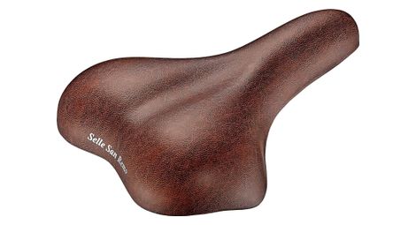 Selle san remo city trekking bike saddle lugano brown mousse hr haute elasticite suspension en elastomere et plaque superieure en cuir pu marron avec impression sportive la technologie du vide garantit une base de selle constituee d un ensemble solide forme par la plaque superieure en pu et la couche de mousse haute resistance poignee en nylon renforce de fibres de verre pour faciliter le levage du velo convient aux tiges de selle atb