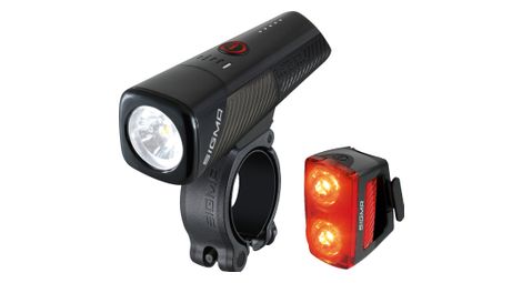Le kit d eclairage buster 1100 buster rl 150 est garant d une securite et d une visibilite optimales lors de vos sorties nocturnes meme en pleine foret avec ses 1100 lumens qui lui offrent une visibilite de 165 metres pendant 2 heures le buster 1100 est un eclairage surpuissant qui vous permettra d eclairer n importe quel chemin et ses alentours lors de sorties vtt nocturnes ses six modes d eclairage dont deux clignotants vous permettent d adapter la puissance lumineuse a toutes les situations et ainsi d economiser la batterie qui peut atteindre 50 heures d autonomie le buster rl 150 est un eclairage arriere feu stop surpuissant qui beneficie d une puissance d eclairage de 150 lumens lui permettant d etre visible jusqu a 2000 metres et est donc assez lumineux pour des sorties en journee ses cinq modes d eclairage dont trois clignotants vous permettent d adapter la puissance lumineuse a toutes les situations et ainsi d economiser la batterie qui peut atteindre 20 heures d autonomie ses temoins de batterie vous permettent de toujours garder un oeil sur l autonomie restante la simplicite d utilisation de ce kit et son montage sans outil en font un kit pret a l usage pour tout type de cycliste les produits modes continus ou clignotants le buster 1100 possede 6 modes dont 2 clignotants tandis que le buster rl 150 en possede 5 dont 3 clignotants un grand choix pour adapter votre puissance d eclairage fonction feu stop le buster rl 150 avertit les autres usagers lorsque vous freinez grace a un capteur d acceleration integre les deux led s allument alors puissamment pendant 3 secondes a chacun de vos freinages une fonctionnalite tres pratique pour circuler en ville et lors de sorties en groupe et qui renforce encore davantage votre securite de jour comme de nuit double lentille sa double lentille et ses deux led osram offrent aux cyclistes qui utilisent le buster 1100 un champ lumineux plus large dans une conception unique ideal pour parfaitement eclairer le chemin mais egalement ses alentours et ainsi prevenir des potentiels obstacles moins visibles comme des branches ou des racines profils de mode le buster 1100 dispose de cinq profils de mode pour vous permettre de ne conserver que les modes d eclairage qui vous interessent un profil de mode est une selection de seulement quelques modes d eclairage parmi les cinq initialement disponibles sur le buster 1100 pour mieux s adapter a vos exigences par exemple si vous n avez pas besoin des modes clignotants vous pouvez choisir le profil de mode qui ne conserve que les modes d eclairage continu memoire de mode plus besoin de chercher votre mode favori a chaque allumage ces deux eclairages beneficient de la fonction memoire de mode qui permet de debuter avec le dernier mode utilise autres fonctions temoins de mode les indicateurs led sur le dessus du buster 1100 indiquent avec precision lequel des six modes d eclairage est actuellement utilise temoins de batterie les deux eclairages possedent des temoins de batterie et de recharge pour garder un oeil sur l autonomie restante et ainsi vous evitez d etre pris au depourvu un simple clic sur le bouton on off lorsque l eclairage est eteint permet d afficher le statut de la batterie visibilite laterale le buster 1100 a le logo sigma sur les faces longitudinales il fonctionne comme un guide lumineux afin que les cyclistes soient plus visibles de cote le buster rl 150 dispose de fenetres laterales qui lui conferent un eclairage a 280 degres recharge usb c ces deux eclairages se rechargent grace a un cable usb c le buster 1100 peut etre charge en 3h il peut egalement etre charge pendant son utilisation a l aide d une batterie externe le buster rl 150 est recharge en 3h egalement differents choix de support le buster 1100 se fixe facilement et fermement sur le cintre grace a son support a vis les coussinets de ce support permettent d adapter la position de l eclairage comme bon vous semble il existe egalement un support pour le fixer sur le casque disponible en accessoire ou livre avec le buster 1100 hl la bande en silicone du buster rl 150 permet de le fixer facilement et rapidement sur toutes les tiges de selle courantes details buster 1100 flux lumineux maximal 1100 lumens visibilite 165 m 6 modes d eclairage high 1100 lm mid 800 lm low 400 lm eco 150 lm night flashing 800 400 lm day flashing 200 lm autonomie 2 h mode high 2 5 h mode mid 5 h mode low 16 h mode eco 5 h mode night flashing 50 h mode day flashing duree de recharge 3 h fixation a vis reglable avec glissiere integree protection a l allumage double clic pour l allumage guide lumineux sigma pour une visibilite laterale etanche aux projections d eau selon ipx4 cinq profils de mode pre re gle s fonction memoire de mode en appuyant brievement sur le bouton le statut de la batterie s