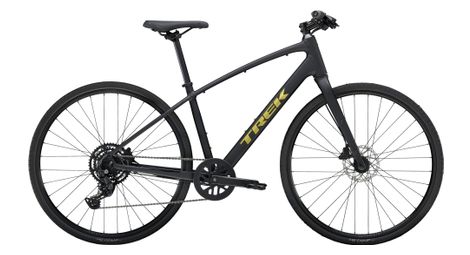 Le trek fx 2 est un velo hybride polyvalent concu pour associer performances confort et qualites pratiques il possede un cadre aluminium leger une fourche en carbone une transmission monoplateau et de puissants freins a disque qui vous arreteront par tous les temps selon vos attentes il peut a la fois etre votre compagnon de trajet pour le quotidien ou votre partenaire de remise en forme ideal les produit la transmission monoplateau offre une large plage de rapports et la simplicite du changement de vitesse unique ce velo de fitness est plus que capable de participer a des sorties de groupe rapides personnalisation aisee avec des garde boue des feux et bien d autres accessoires transmission shimano cues 1x9 vitesses freins a disque hydrauliques tektro 160 160 mm details cadre aluminium alpha gold aluminium acheminement interne des cables fixations pour porte bagages et garde boue freins a disque a fixation post mount fixation pour bequille qr 135x5 mm fourche aluminium fx alloy flat mount disc rack mounts 410mm axle to crown thruskew 5mm qr manette de derailleur shimano cues u4000 avec affichage optique des vitesses 1x9 vitesses derailleur arriere shimano cues u4000 9 vitesses cassette shimano cues lg300 linkglide 11 46 dents chaine shimano lg500 pedalier prowheel alliage plateau narrow wide 40 dents freins tektro hd r280 disque hydrauliques disque tektro wave 6 trous 160 160 mm roues bontrager connection double paroi 32 trous largeur de 20 mm valve schrader moyeux formula dc 20 dc 22 9x100 9x135 mm roue libre hg pneus bontrager h2 comp tringle rigide 30 tpi 700x35 mm guidon bontrager comp lowriser alliage 31 8 mm elevation de 15 mm poignees trek line ergonomic pro lock on potence bontrager elite 31 8 mm compatible blendr 7 selle bontrager sport tige de selle aluminium bontrager 27 2 mm deport de 12 mm