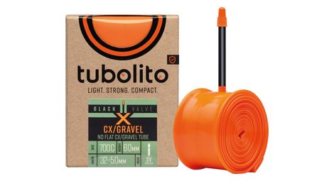 Dites adieu aux crevaisons qui gachent votre balade la tubolito x tubo est l une des chambres a air les plus resistantes du marche concue pour offrir une durabilite maximale elle est faite pour encaisser les coups et pour plus de tranquillite d esprit elle est couverte par une garantie de remplacement d un an en cas de crevaison roulez vite roulez loin et laissez tubolito s occuper du reste elle est disponible avec des valves presta de 60 mm oranges ou noires et compatible avec les freins a disque et les freins a patins toutes les chambres a air tubolito sont fabriquees a partir de polyurethane thermoplastique tpu le tpu est utilise avec succes dans l industrie depuis de nombreuses annees et est apprecie pour ses performances exceptionnelles les fondateurs de tubolito akos kertesz et christian lembacher ont travaille avec le tpu avant de creer tubolito et ont acquis une grande expertise au fil des ans la combinaison du tpu et d un procede de fabrication brevete permet aux chambres a air tubolito d etre a la fois petites legeres et resistantes aux crevaisons ces proprietes peuvent etre optimisees en fonction des exigences imposees a la chambre a air les chambres a air de la gamme x tubo sont extremement resistantes et sont ideales pour une utilisation quotidienne elles offrent une resistance maximale aux crevaisons et beneficient d une garantie de remplacement d un an pour les x tubos enregistres sur le site web de la marque les produit chambre a air extremement resistante pour le cyclocross et le gravel compatible avec tous les types de velos de cyclocross et de gravel garantie de remplacement d un an en cas de crevaison details gamme x tubo utilisation cyclocross gravel adaptee aux freins a disque et aux freins a patins materiau tpu polyurethane thermoplastique valve presta 60 mm dimensions etrto poids reference 700 x 32 50c 32 50 622 131 g 33000156
