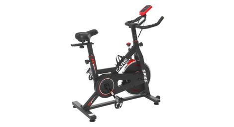 Modele pour une utilisation de 3 heures par semaine chassis robuste offrant une position proche d un vrai velo roue d inertie le velo spike est ideal avec sa masse d inertie de 12kg qui vous permet de ne sentir aucun a coups et de regler la resistance precisement freinage par machoire a patin silencieux et precistransmission par courroieordinateur le velo de biking est equipe d un compteur qui integre 7 fonctions essentielles pour le suivi de votre progression temps la duree de la seance ecoulee en minutes et secondes distance distance parcourue durant chaque seancevitesse affichage de la vitesse actuelle en km h calories estimation des calories brulees odo indique le nombre total de km parcouruscan affichage successifs des indicateursfrequence cardiaque le compteur affiche la frequence de votre pouls en battements par minute bpm confort le velo fitness est tres simple d utilisation confortable et vous assure une grande longevite d utilisation reglage de la selle vertical horizontal angle pour une posture optimalepedales crantees et sangleesguidon de triathlon reglable en hauteurroulettes de deplacement et dimensions 96 x 50 x 117 cm ne necessite pas de branchement sur secteurcompteur a pile pour suivre vos donnees normes et garanties repond aux normes ce en957garantie 5 ans sur chassis et 2 ans sur les pieces d usures