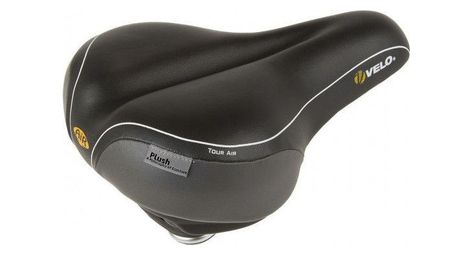L air velo saddle tour en noir est une selle confortable qui peut etre ajustee individuellement la selle a un coussin d air qui peut etre gonfle via la valve construite afin que la douceur puisse etre reglee comme vous le souhaitez suspension d arc tech pour plus de confort elastometre absorbant pour encore plus de confort base nette tech pour l eclairage de pression cut de base de la zone o pour un ajustement optimal ne pese que 665 gr dimensions 275 x 212 mm l x b